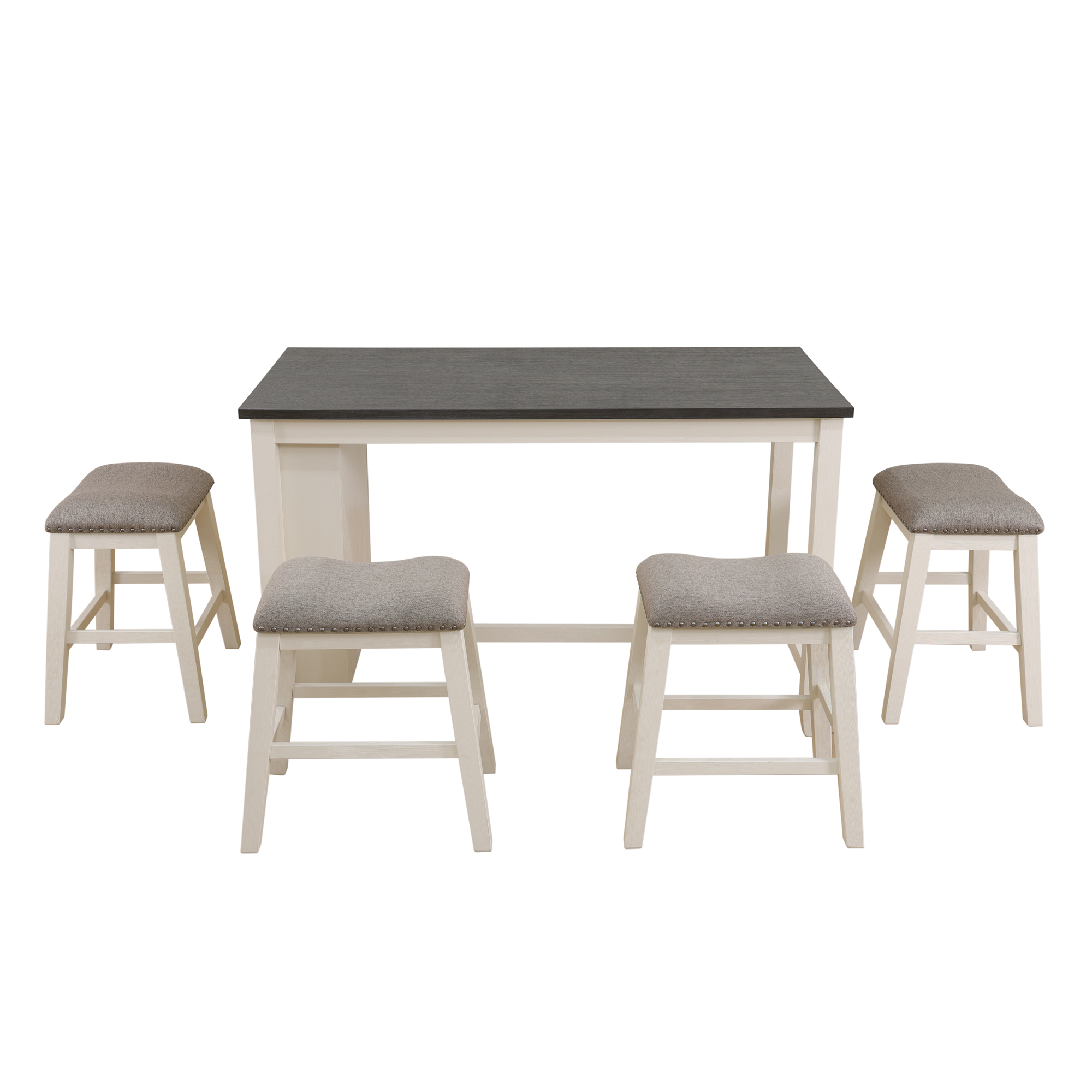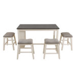 White Oak with Black MDF Top and Grey Linen Living Room Table set 5 PIECES